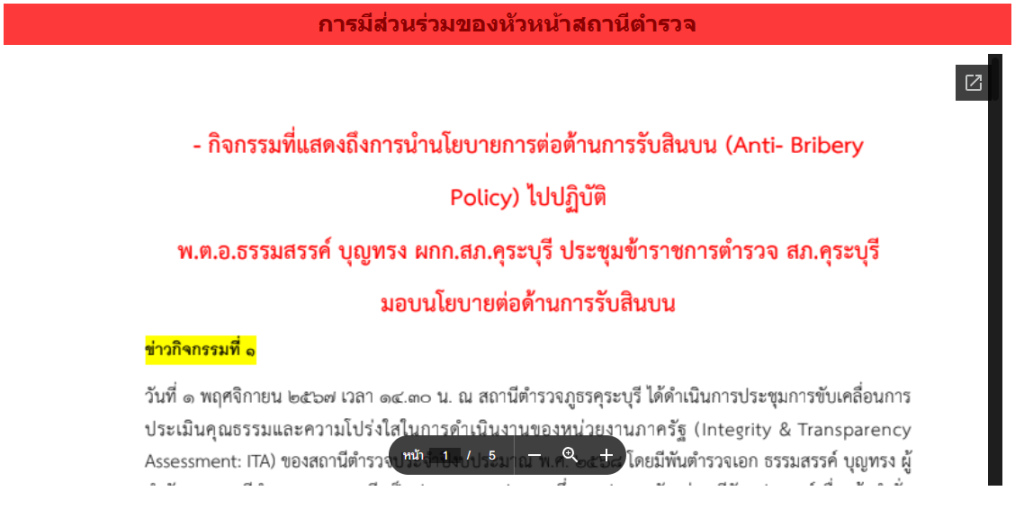 ข่องทางแจ้งเรื่องร้องเรียนการทุจริต